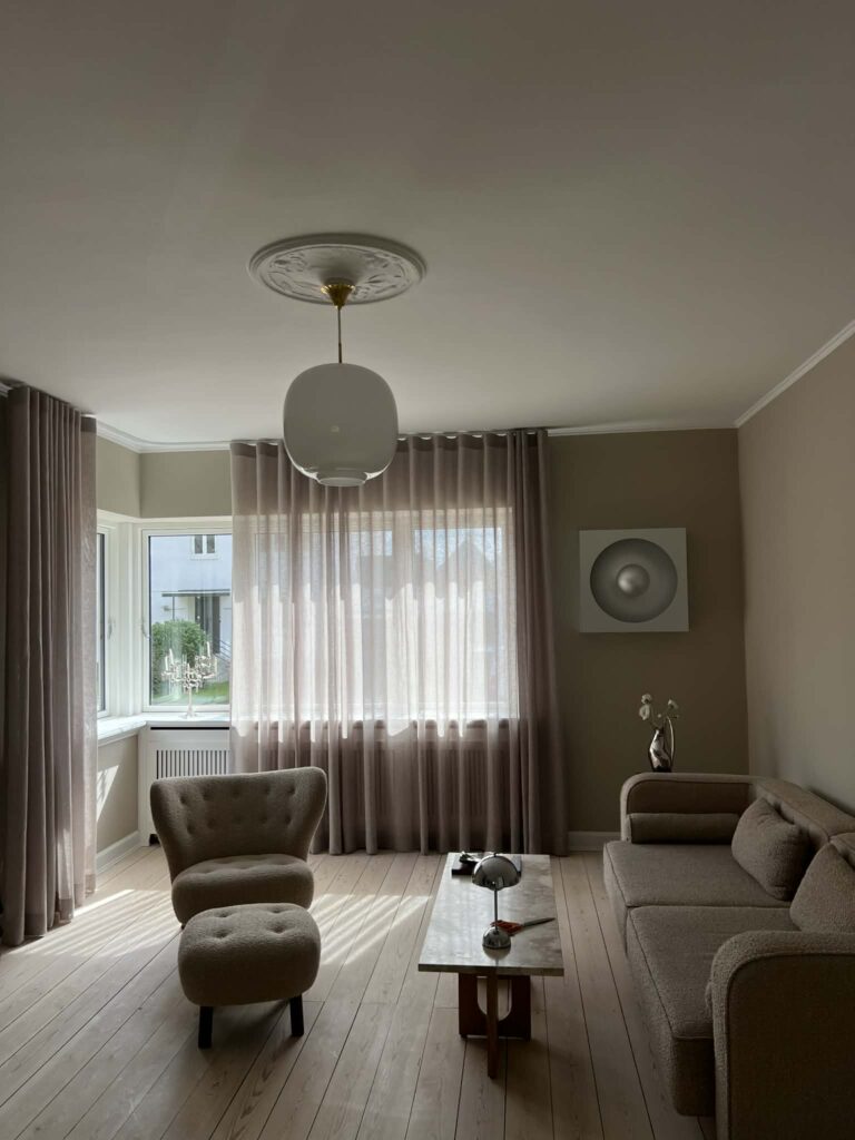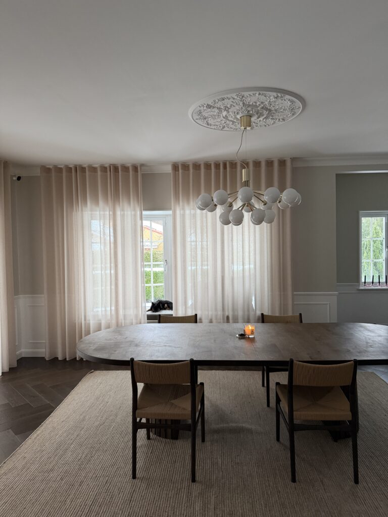 Min mand og jeg startede vores gardinrejse hos Gardinhuset i deres showroom i Odense. Vi var meget spændte på vores møde, da vi ikke havde et klart billede af, hvad vi ønskede os til vores nye hus. Da vi trådte ind, steg pulsen kun yderligere, da vi så smukke mønstre og farver hænge i metervis fra lofterne i det store rum. Pludselig havde jeg 100 idéer og var hurtigt på vej ud ad en tangent, da et stort smil og en levende stemme pludselig afbrød mine tanker midt i deres galopløb rundt i lokalet.
