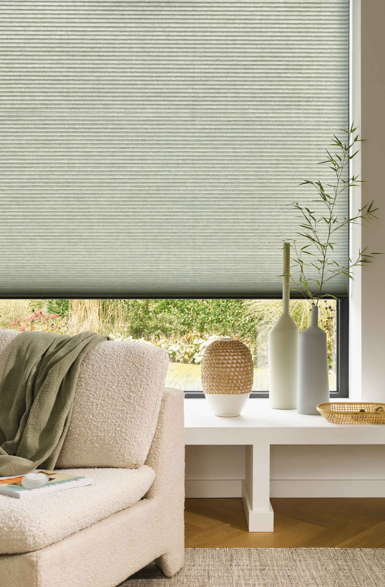 En af fordelene ved et dobbelt plisségardin er, at de hjælper med at gøre dit hjem mere bæredygtigt ved at mindske energiforbruget og give et bedre indeklima. Det skyldes, at gardinet har to lag plisseret væv, hvorimellem der opstår celler med luft. Cellerne skaber en isolerende effekt, som både er effektiv sommer og vinter. Om sommeren holder Duette gardiner varmen ude, så rummet ikke bliver overophedet, mens de om vinteren omvendt holder varmen inden døre.